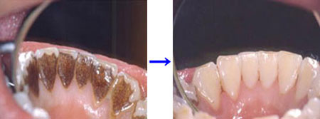 強度のタバコのヤニなど、頑固な汚れの場合でも、歯表面に付着した汚れ・着色であれば、きれいに除去することが可能です。
