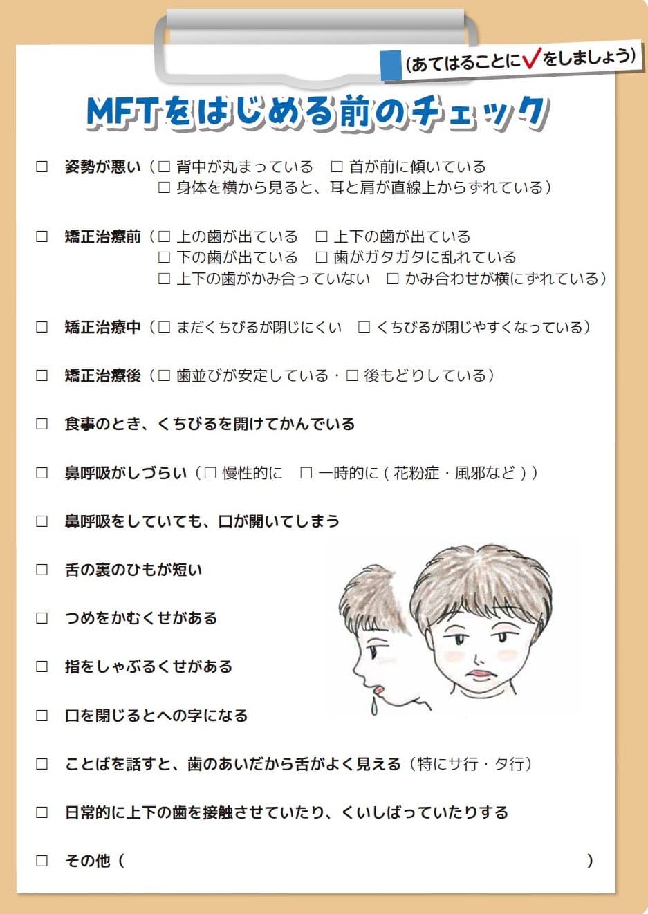 矯正治療と併せて行うケースが多いですが、MFT単独でも受診可能です。