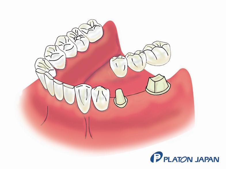 失った歯の両隣の歯を削り、つなげて被せることで、かみ合わせを回復させる治療法です。