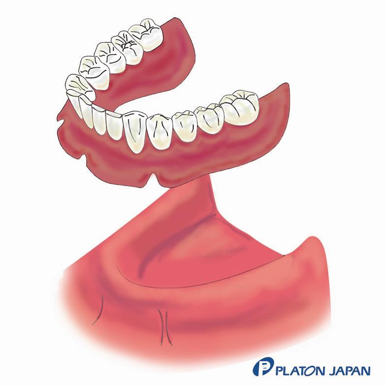 型を採って、総入れ歯を入れることで、かみ合わせを回復させます。